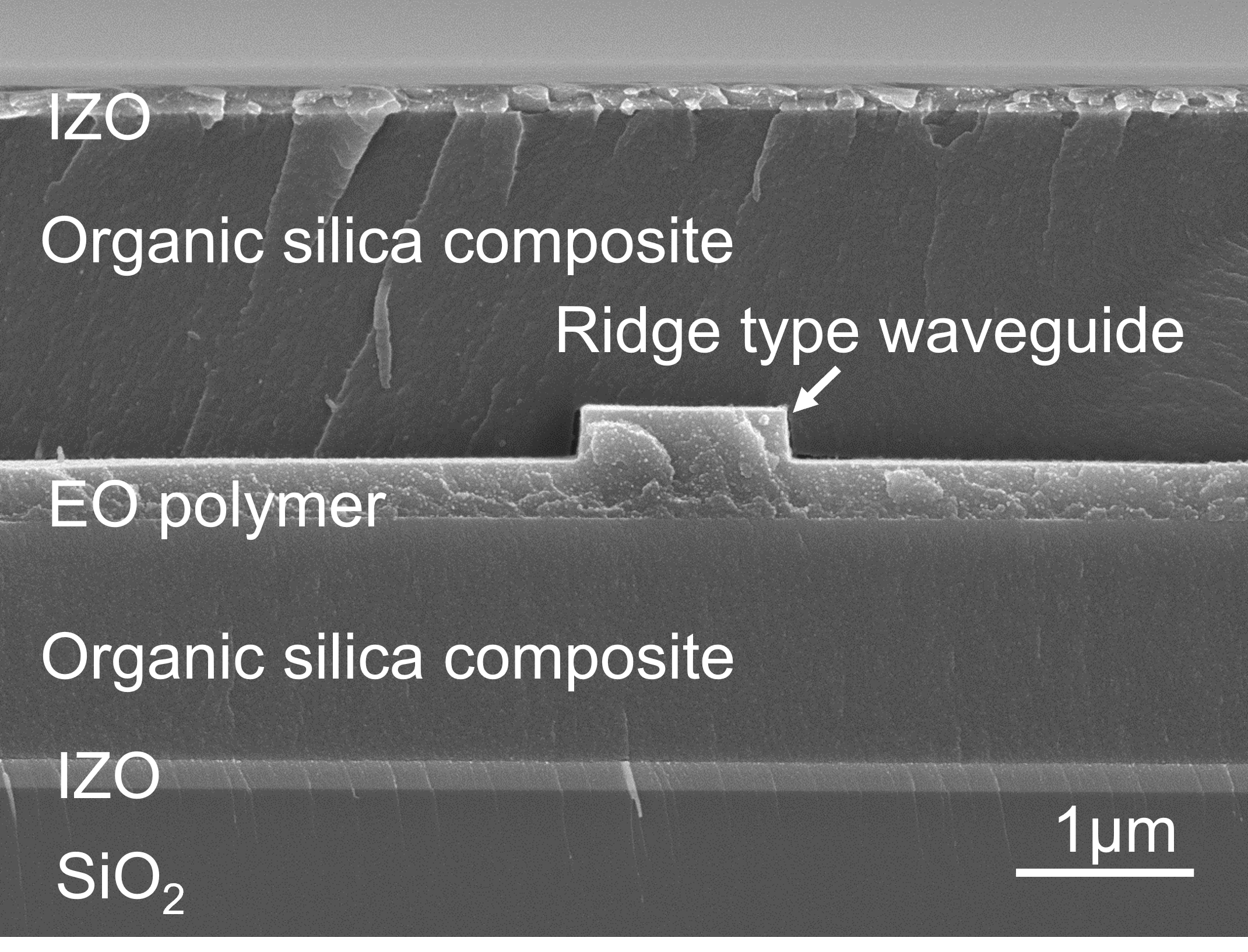 This EO polymer optical modulator for visible light is expected to be applied to next generation display devices such as stereoscopic displays and smart glasses.