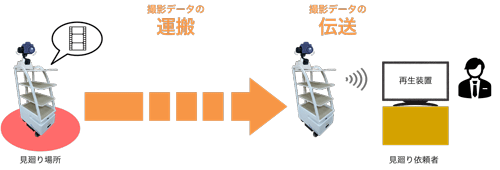 自律移動サービスロボットが見廻り場所を4Kカメラで撮影し、データを依頼者に運搬・伝送するシステム