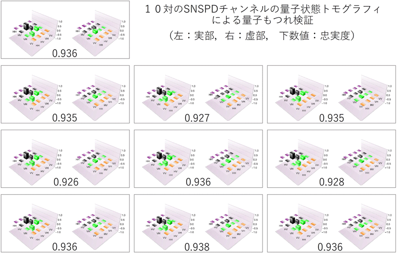 図3 11チャンネルのSNSPDを使って量子状態トモグラフィを行った測定結果。