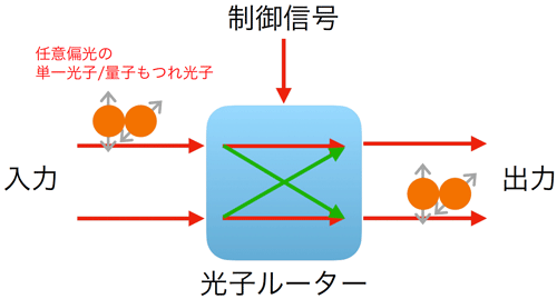 近年、量子コンピューターや量子暗号通信などの次世代情報技術の研究が活発化しています。これらを実現するためには、量子情報デバイス間をつなぐ量子ネットワークを構築し、光の量子である単一光子や量子もつれ光子の伝送経路を自在に切り替えるルーティング技術が求められます。