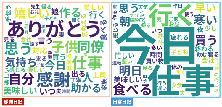日記の内容を定量的に分析した結果、感謝に注目することで、自分が受けている上司や同僚、家族からの支援などに気づく可能性を示唆