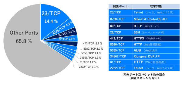 従来主流だったMirai型とは異なるIoTボットの感染活動が拡大し、家庭用ルータや監視カメラの録画機器など、利用者が感染に気付きにくい機器が引き続き標的となっています。