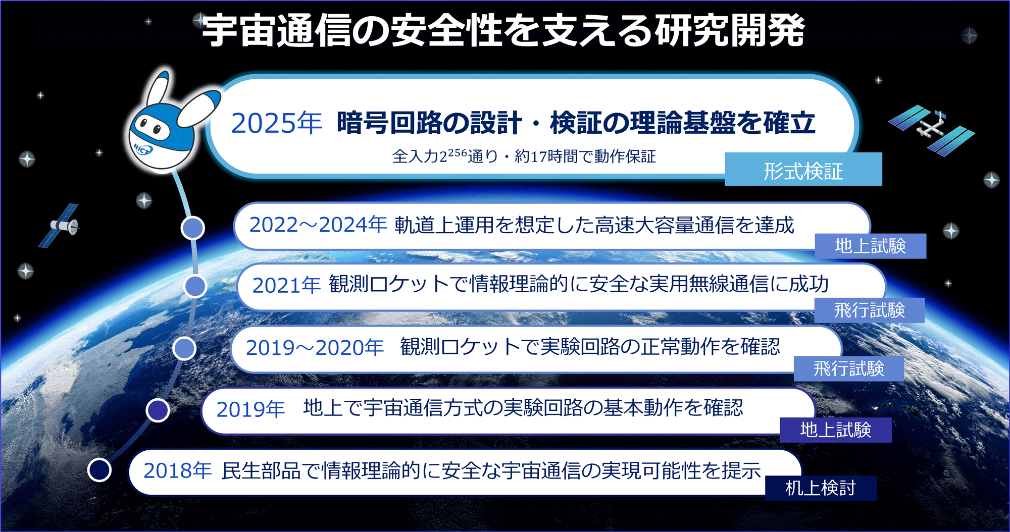 https://www.nict.go.jp/press/2021/08/17-1.html - 2019年7月10日 NewSpace時代に向けた通信セキュリティ技術の初期実験に成功