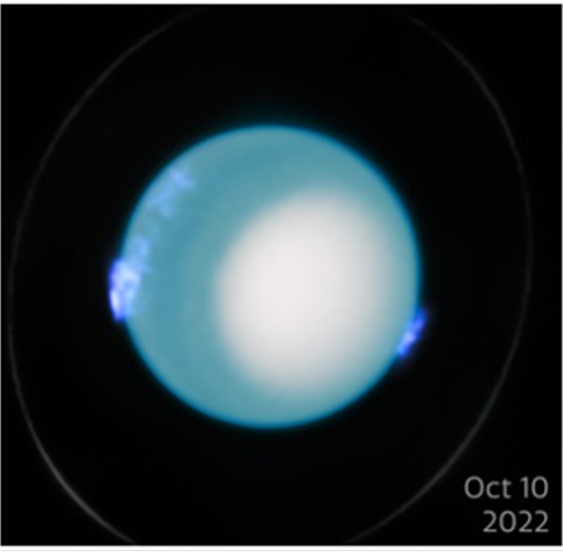 図2. 2022年10月10日にハッブル宇宙望遠鏡で観測された天王星オーロラ [Image Credit: ESA/Hubble, NASA, L. Lamy, L. Sromovsky]